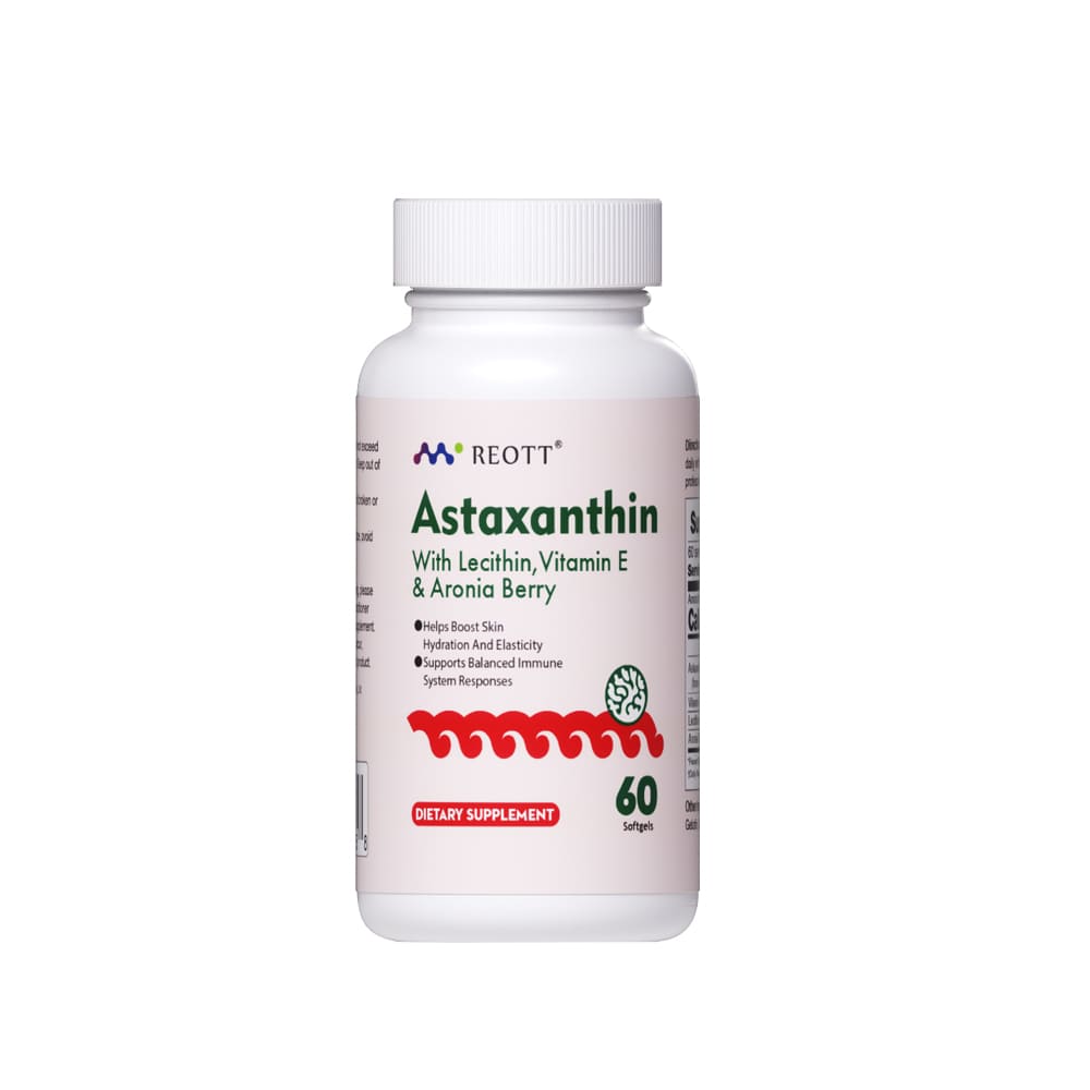 REOTT Astaxanthin is a powerful antioxidant supplement that combines natural ingredients for skin and cell protection.